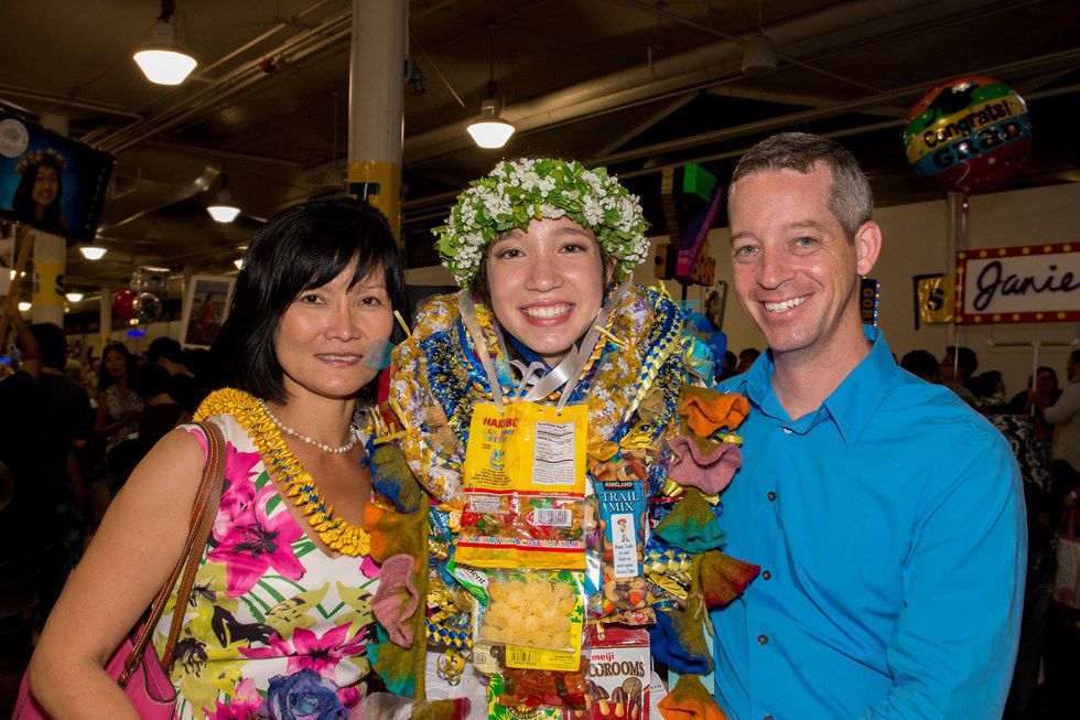 This is me at high school graduation after trading candy and flower lei with all of my friends. At events such as graduations, weddings, and departures, lei are often ceremoniously given as a symbol of love, friendship, and celebration.