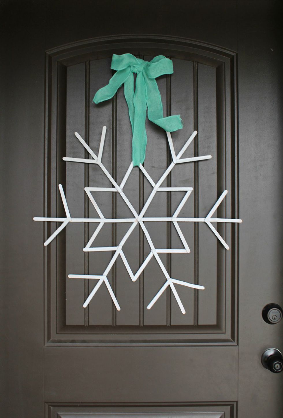 These are so easy to make and only require four items: popsicle sticks, a hot glue gun, paint, and decorative ribbon. Hang them on your dorm room doors or the walls of your apartment and you'll feel like you're walking in a winter wonderland! Just grab a bag of wooden popsicle sticks, paint them your favorite holiday color, and arrange them into a stunning snowflake design. I have seen these painted white, light blue, red, green, gold, and silver. Use a hot glue gun to stick them in place and tie a brightly colored ribbon through your snowflake for easy hanging. If you're feeling extra festive, use a can of glitter spray to add a layer of shimmer to your snowflake.5. Candy Cane Wreath