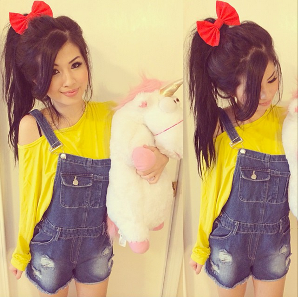 Who can resist the cuteness of Agnes from "Despicable Me"? Grab a pair of overalls, leave one side un-hooked, rock a high pony and you are good as gold. Oh... but don't forget the fluffy unicorn!