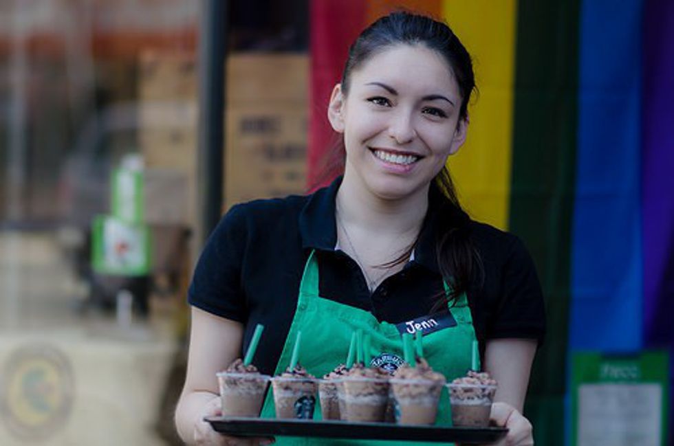 Black pants, Black shirt, and an apron paired with a cup of coffee transforms you into the local savior of everyone in need of a caffeine fix.