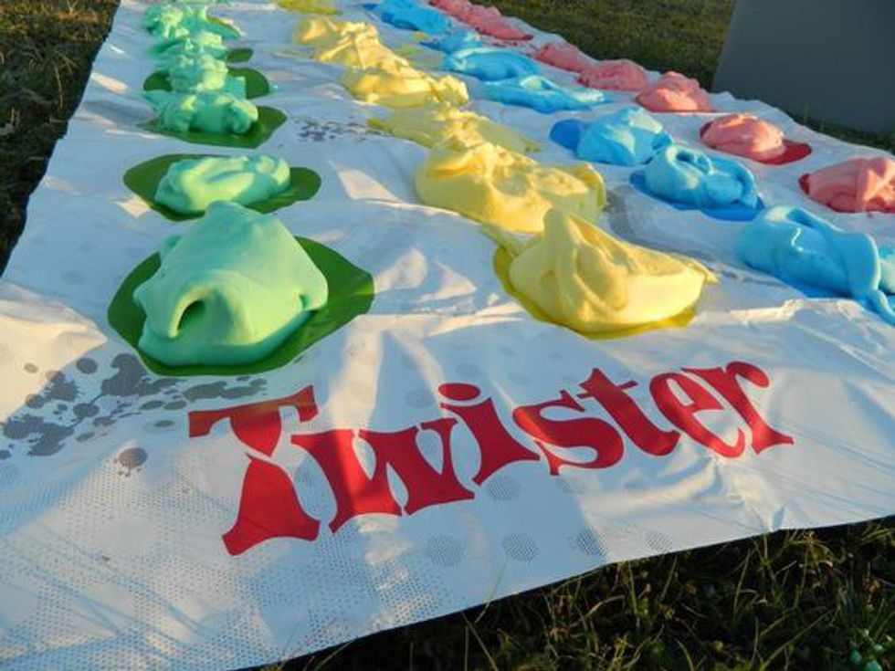 Add some dye to shaving cream and place on each circle for a messy game of Twister.
