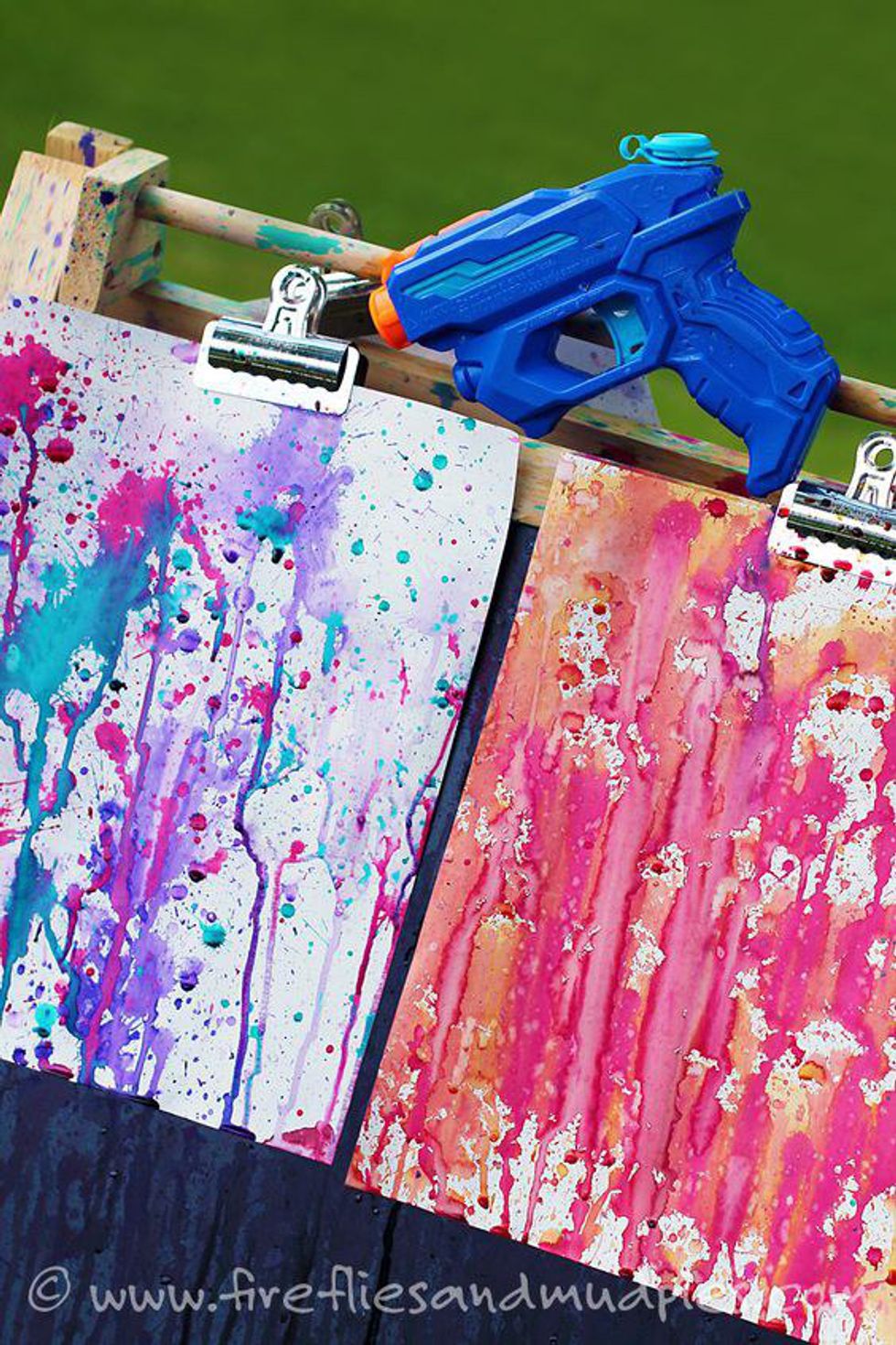 Create unique décor by filling a squirt gun with paint, or fill water balloons with paint and throw darts.