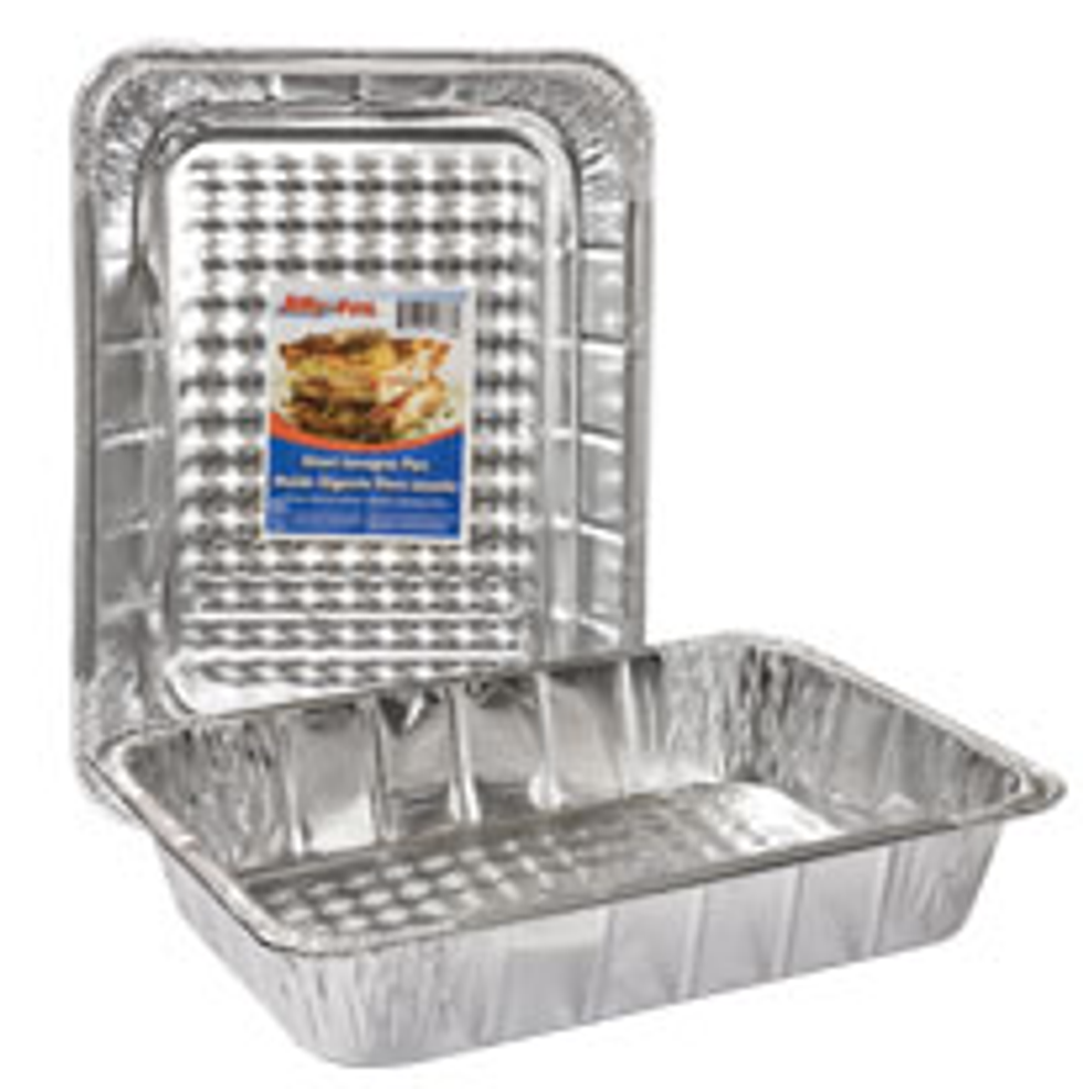 These pans are cheap but sturdy enough to bake with and perfect for the holidays when you bring casseroles and desserts to relatives' houses and know that you'll never get your beloved casserole dish back. They come in a variety of sizes, some with lids, and to be 100% honest the large shallow ones can double as convenient disposable litter boxes.