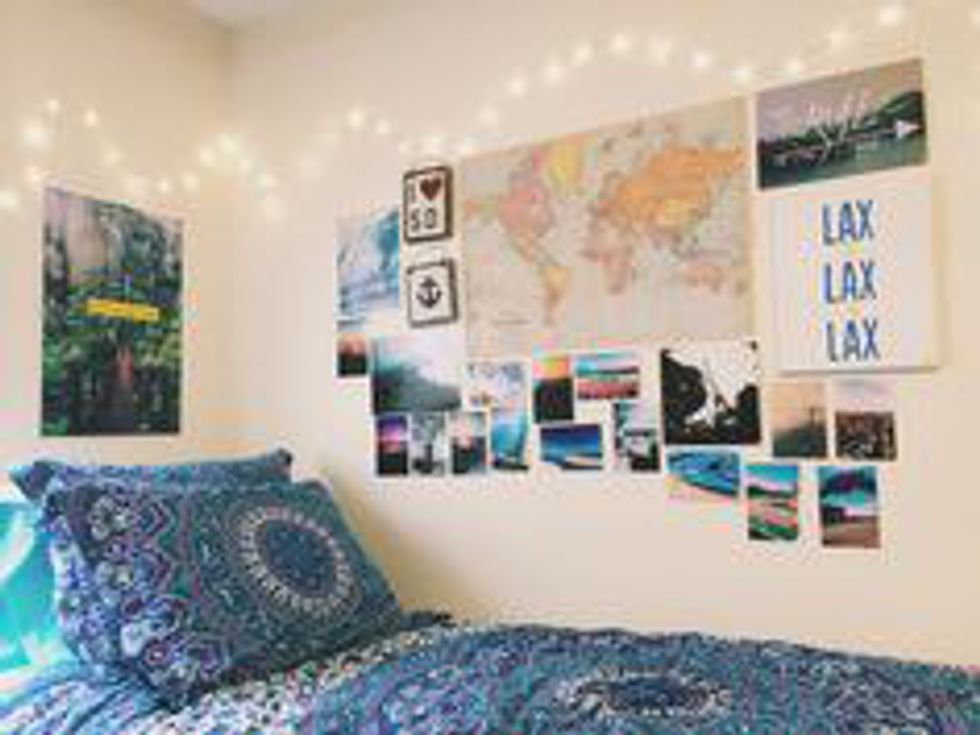 Lights- don’t settle for that ugly, mental institute looking lighting in your room, warm it up with some hanging lights. Even cheap Christmas lights will turn your room into a warm, cozy getaway.