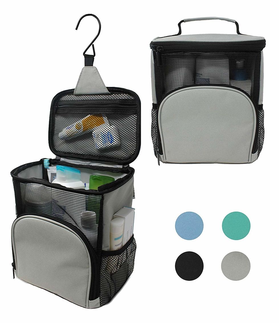 TERRA HOME Portable Shower Caddy - Large Capacity, Quick Dry, Mildew Resistant with Metal Hook - Hanging Shower Bag - Waterproof, Breathable Mesh Toiletry Shower Tote for Gym and College Dorm (Grey)