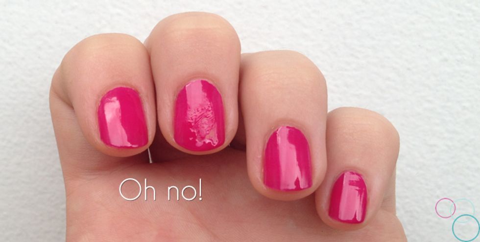 You probably weren't paying attention or you're just not a well-seasoned pro at the whole nail salon thing but within seconds of getting your toe painted, you already managed to knick it and mess it up. Sorry!