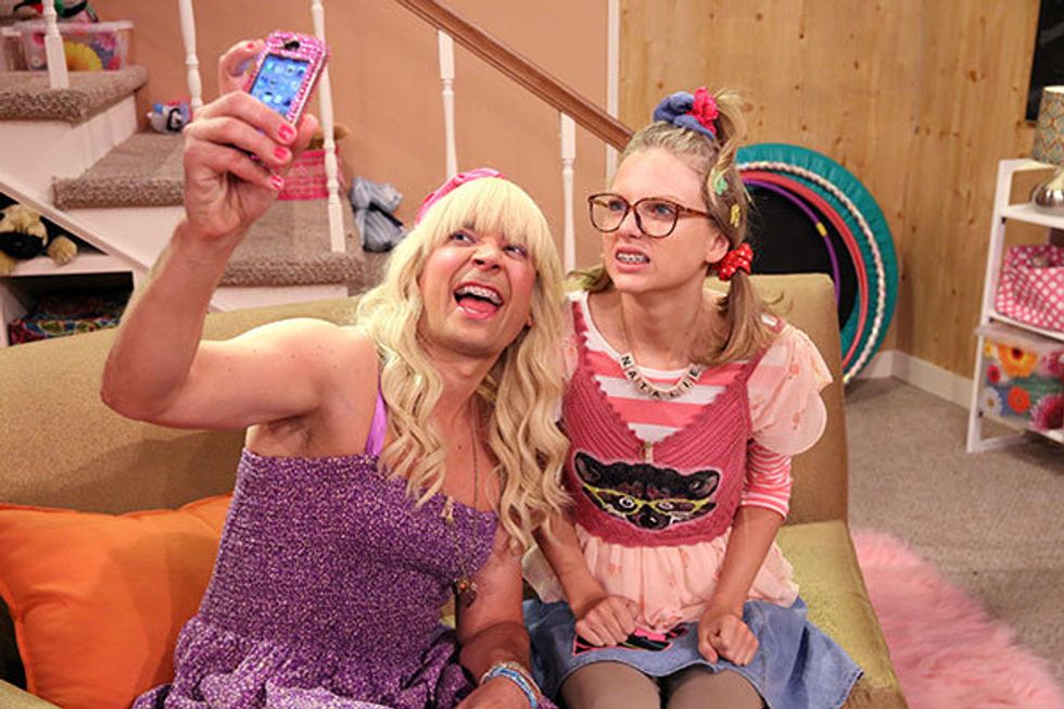 "Okay, Claire, you'll be my mom, and Jenna, you'll be my grandma! Ha ha, this is so hilarious and fun!"