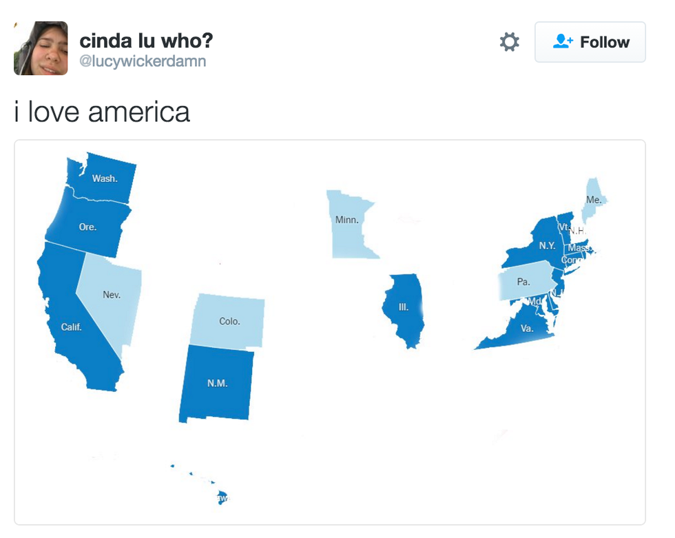 Throughout this past week, I've seen dozens upon dozens of posts concerning the results of the presidential election. Some are elated. Others are devastated. No matter what side of the election you might be on, we can probably all agree on one thing — the election tweets have been absolutely hilarious. Here are my top 12 tweets from election night.