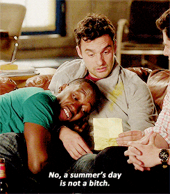 Remember that optimistic, happy article I wrote last week? The one about spring break and how fun it was? Yeah, well unfortunately, spring break has come and gone faster than Chandler could make some sarcastic joke about spring break.So now it's back to the daily grind of trying to balance homework and binge watching Netflix. If your break was anything like mine, you might be broke and behind on lots of homework. So in that case, here's 12 random "New Girl" gifs to cheer you up and help you procrastinate even more.