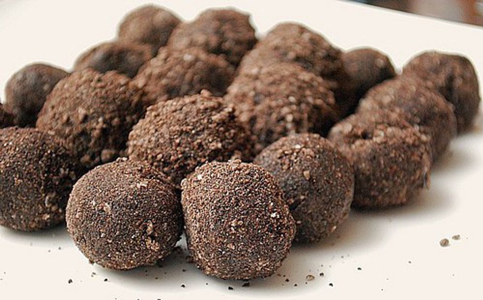 Use crushed toffee-tastic cookies to make these awesome cake pops (or should I say cookie pops?)