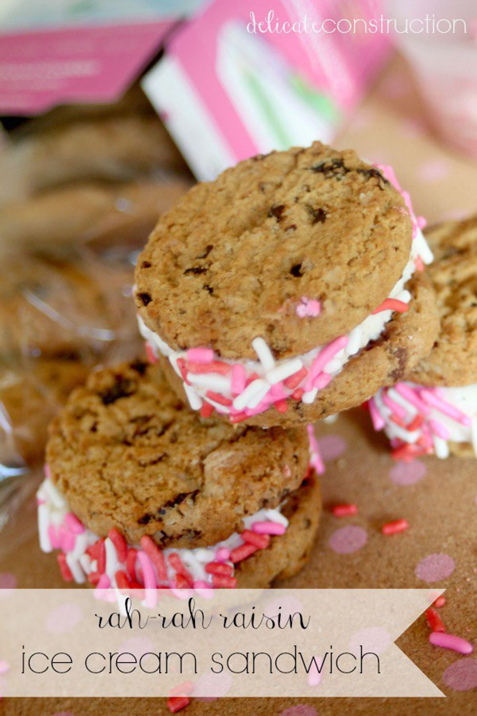 Use Rah-Rah Raisins (or any other cookie!) to make these mini ice cream sandwiches!