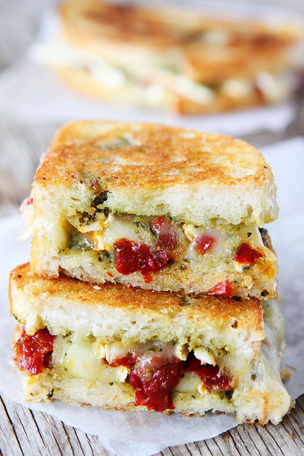 This grilled cheese is perfect for when you're feeling fancy. It gives me total spa vibes. This recipe is a perfect way to impress your friends, but at the end of the day, it's still a grilled cheese.http://www.twopeasandtheirpod.com/brie-pesto-and-s...