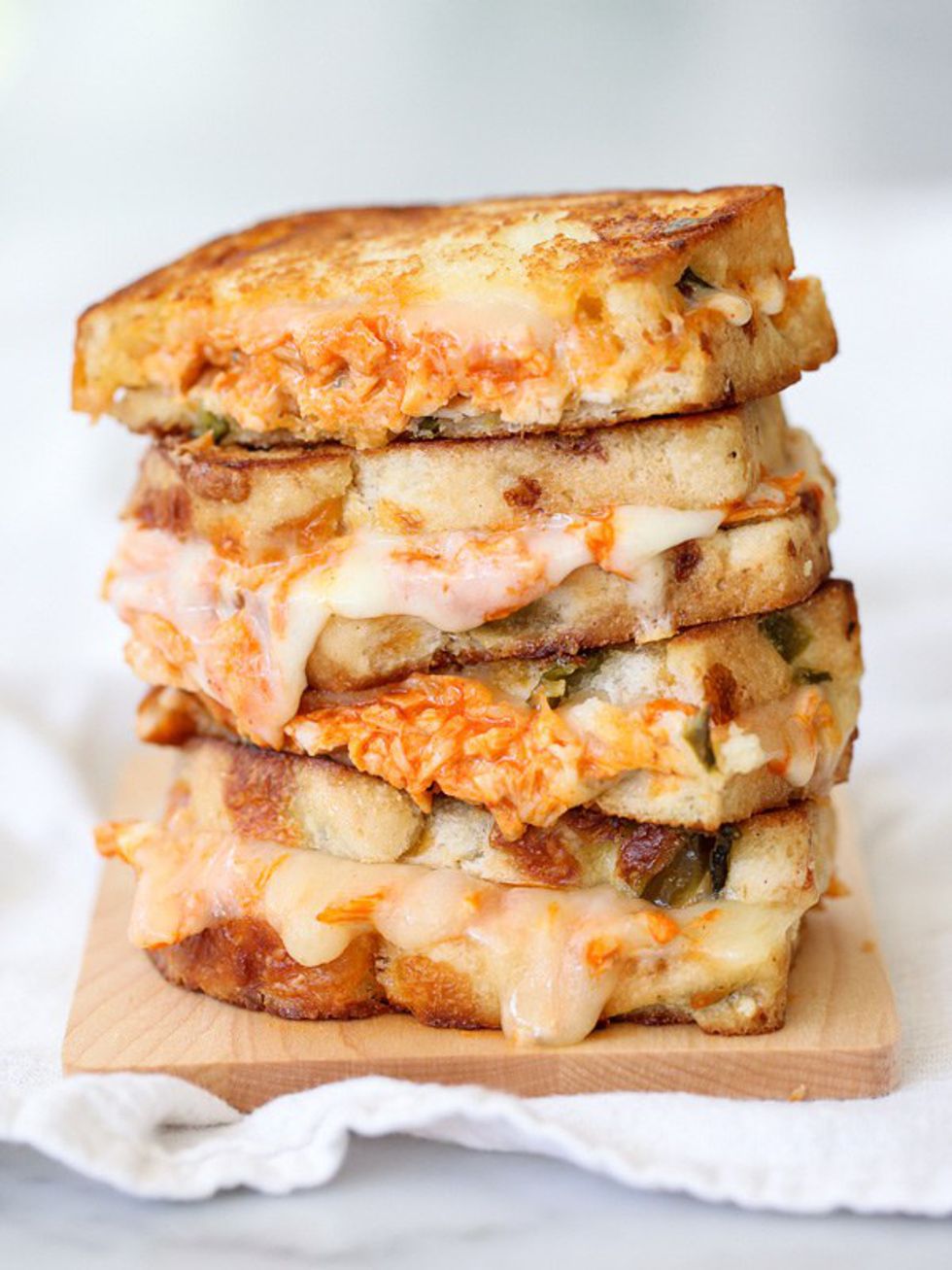 This sandwich is perfect for anyone who loves a little bit of spice in their snack. It's also a perfect way to include some protein into your average grilled cheese.http://www.foodiecrush.com/buffalo-chicken-grilled...