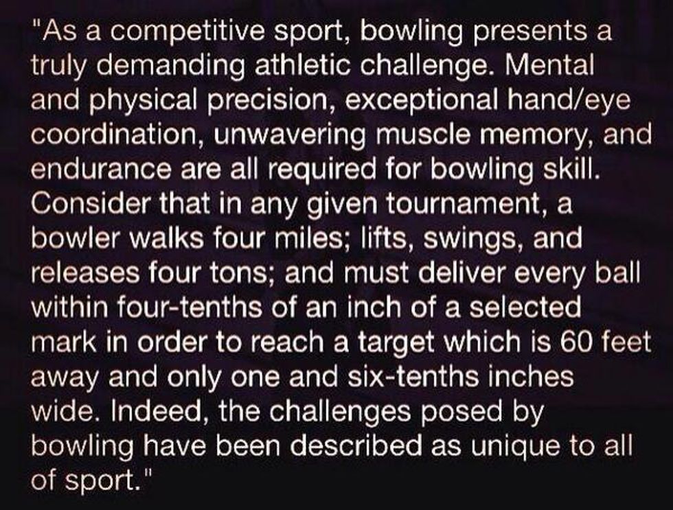 8. You end up constantly defending bowling as a sport to those who say differently.