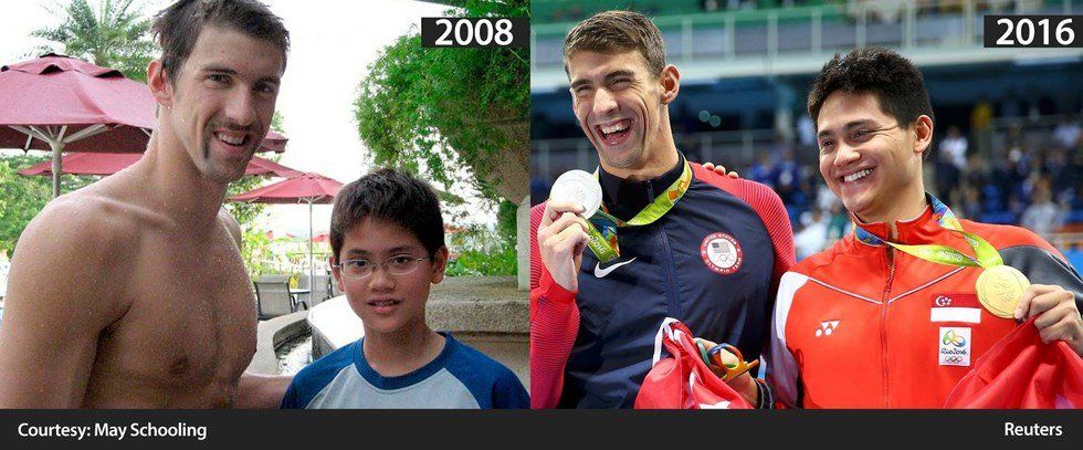 Although not a gold medal win, Phelps makes history again by having the first three-way silver medal tie in Olympic swimming history for the 100m butterfly. He alongside, Laszlo Czeh and Chad Le Clos were beaten by a second by 21 year old Joseph Schooling from Singapore. This was Michael’s last individual event of his career but he ended it with all smiles embracing Schooling in congratulations. Schooling must feel like an extra special champion beating the Michael Phelps and his idol. Back in 2008 before Beijing trained in Singapore and got a picture with young Schooling. Now it’s a picture of the student besting the master.