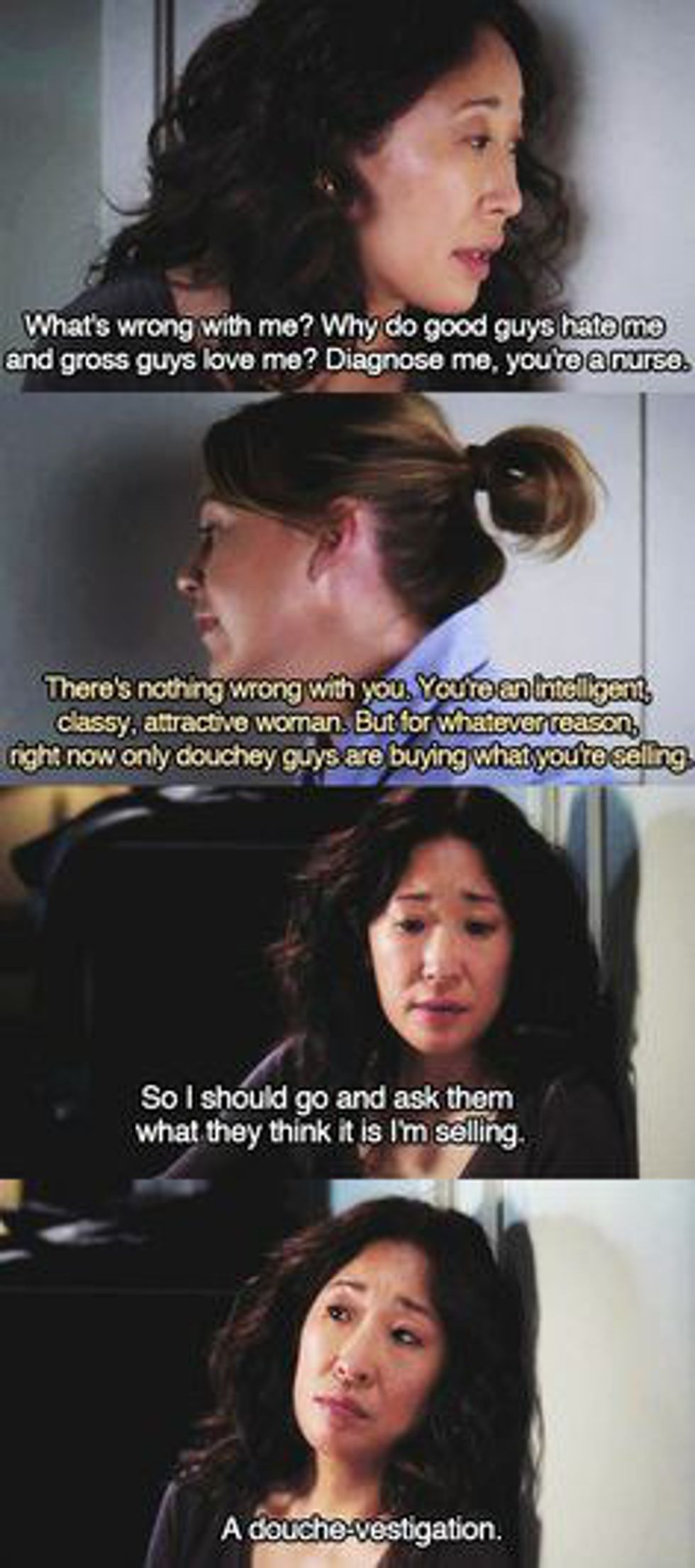 Grey’s Anatomy is one of the few shows that offers something for just about anyone, but one of my favorite dynamics that is offered is that of true, lasting relationships. Even though the iconic concept of finding your person was coined by Christina Yang and Meredith Grey, every character on the show has a person of their own, and I honestly feel that if you are going to take anything away from the show, this would be the concept that I personally endorse. (Sorry, McDreamy, relationships come first!) The greatest thing about this concept is that literally anyone can be your person! Kind of like people can be your spirit animals. (Shout out to my own spirit animal, JLaw!) Your person can be your childhood best friend or someone you met a week ago and instantly clicked with. And there are no set qualities that your person must have because we are all different and all need different things, but for the purpose of this article and in honor of the return of my own person, who is basically my personal Christina Yang, here is my list of indicators that you may have found your person.