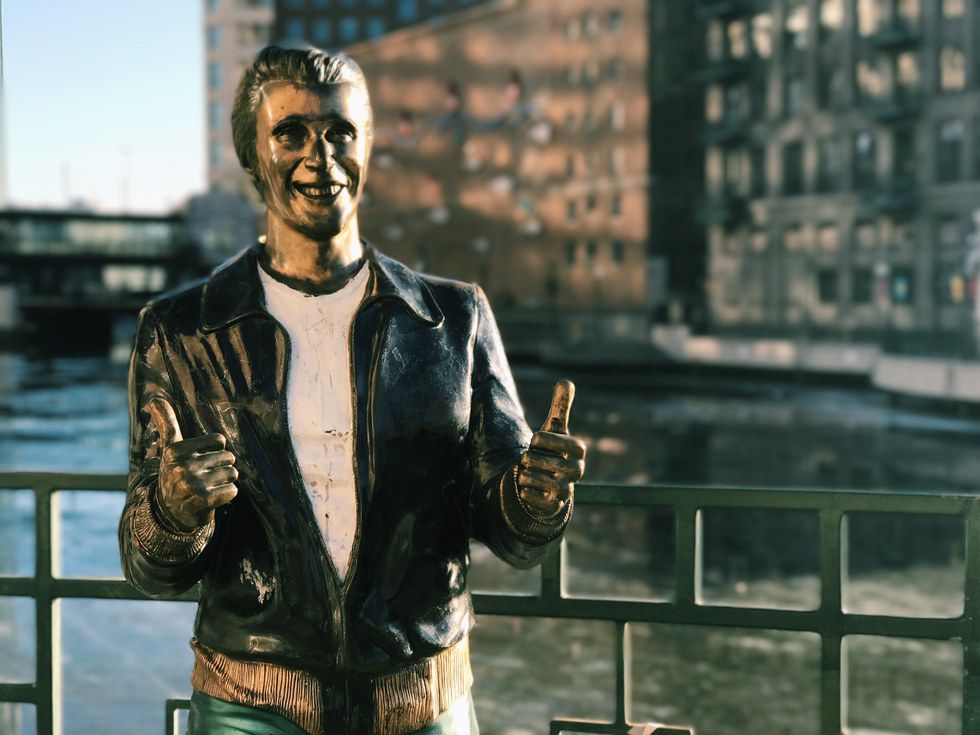 Located on the RiverWalk mentioned above, just south of Wells St. in downtown Milwaukee, is the Bonze Fonz. The statue, which is made entirely of bronze, depicts Henry Winkler as the Happy Days TV show character, Arthur Fonzarelli - and if you feel like checking something off of the UWM Bucket List, a photo with the Bronze Fonz is number 49.