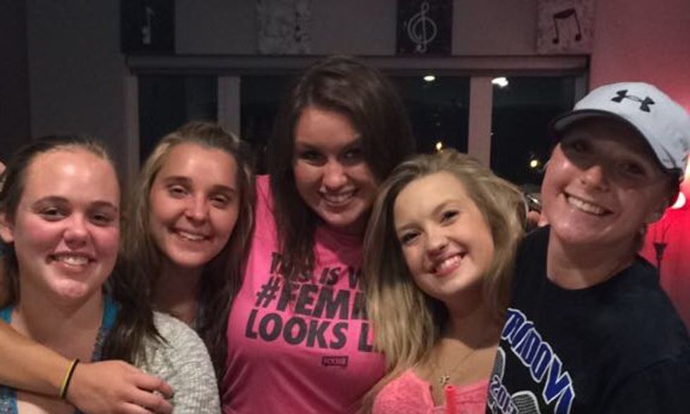I mean, how cute does my roommate on the right look at this party she came to straight from work? Rockin the baseball cap is the way to go.
