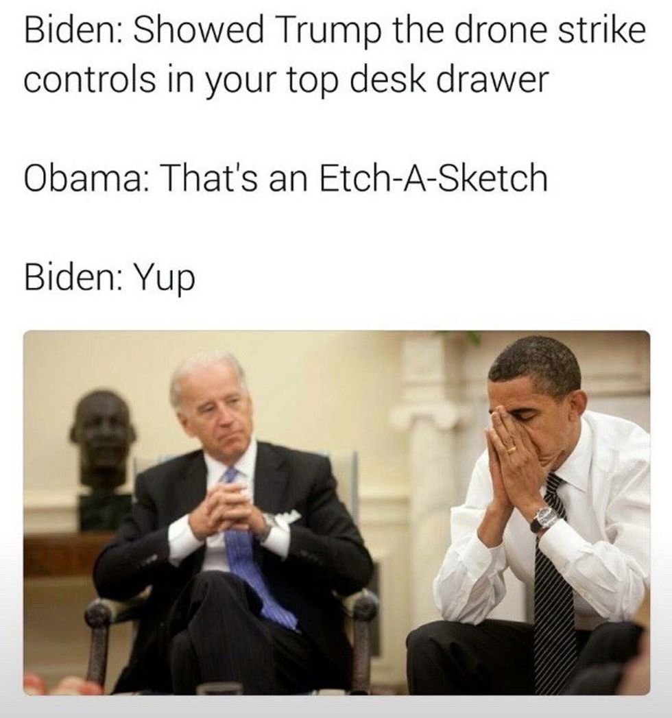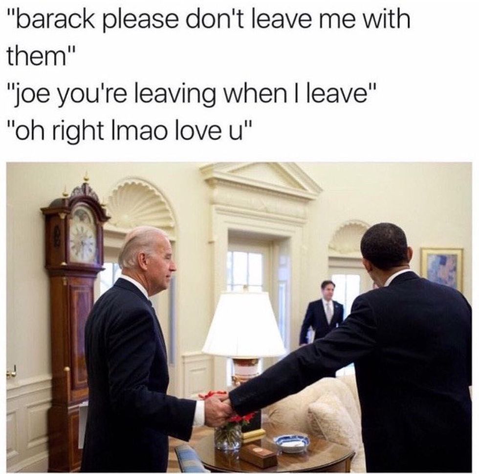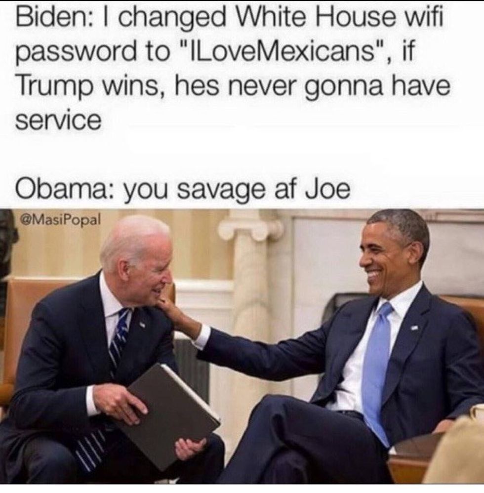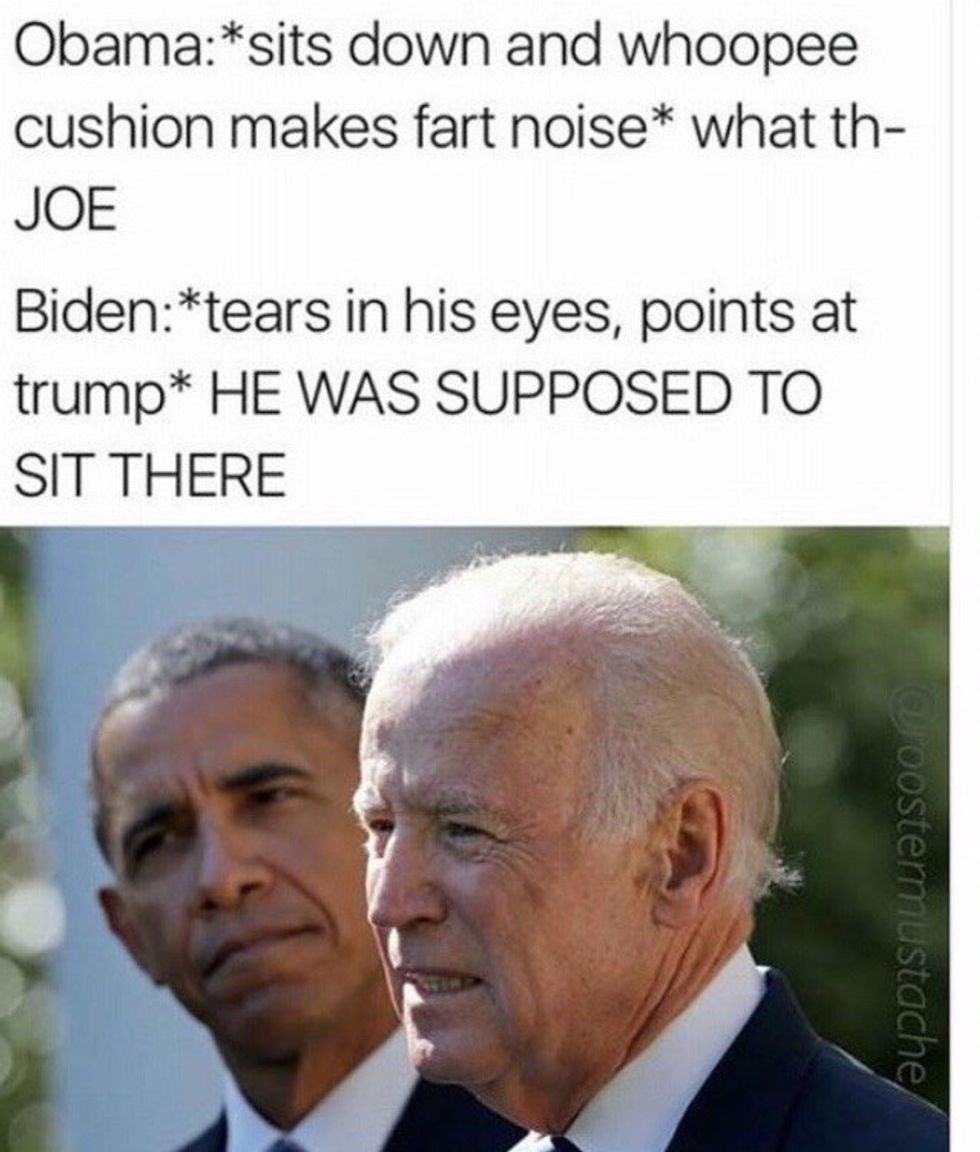 Need to laugh through the pain of this God forsaken election? Welcome to the best of the best Joe-bama memes. Not of these have sources to who created them so if anyone knows the creative geniuses behind these, someone should tell me!!