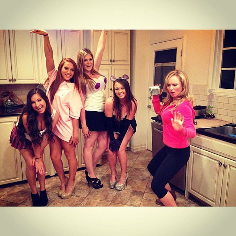 Though this is a less timely choice, it's a classic and is perfect for a group of three or four girls and gives you many different easy options to pick from. Either go with all pink, their Christmas themed outfits, or cut two wholes into whatever shirt you like. Or in classic Mean Girl fashion, just add animal ears to any skimpy outfit.