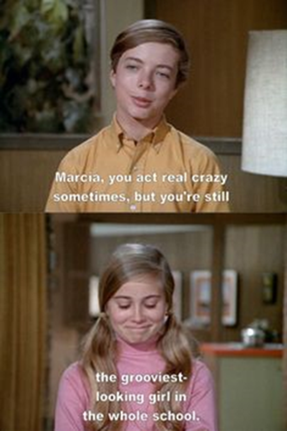 2. Don't try to live up to your siblings standards. We all know what quote is about to come... "Marcia, Marcia, Marcia!" Don't live in your sibling’s shadow, and don't try to be everything they were. You are you for a reason. You might get turned down from being a Pom Pom girl, but hey, there's always another club! Don't compare yourself. People love you for being you, not for being related to your sibling.