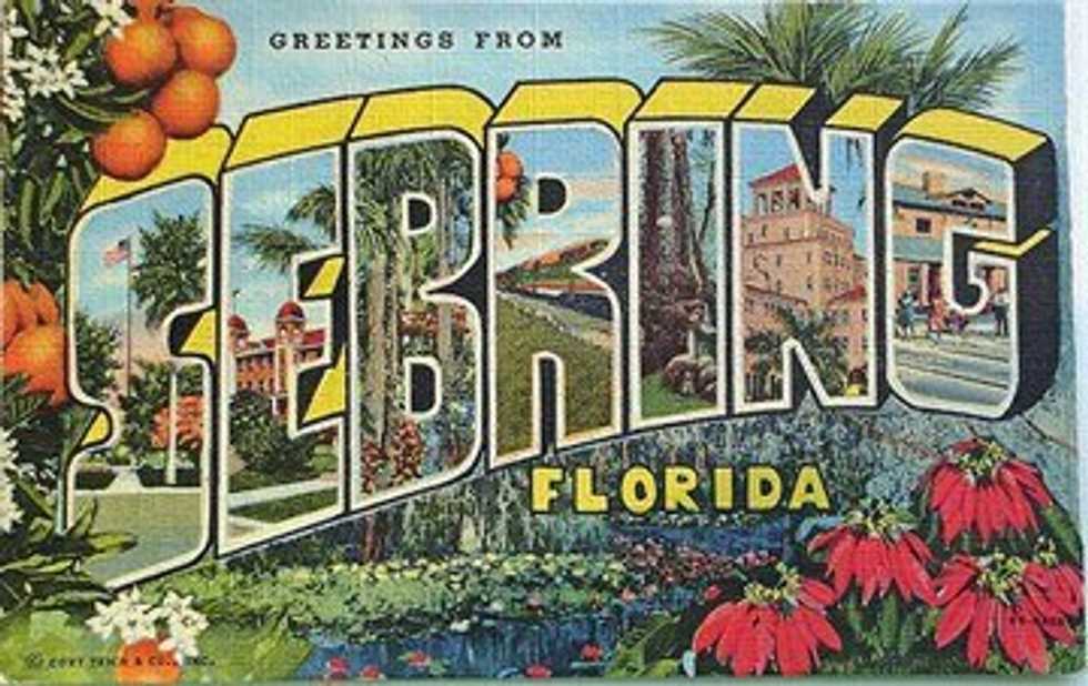 Sebring, Florida has been my home for 19 wonderful years. The small town in the heart of Florida is where I call home. Sebring is the type of place where when you're here, you envy the big city people and all of the things the big cities have to offer but when you're gone; you realize there's no place like home! People who live in Sebring know all of these to be true!