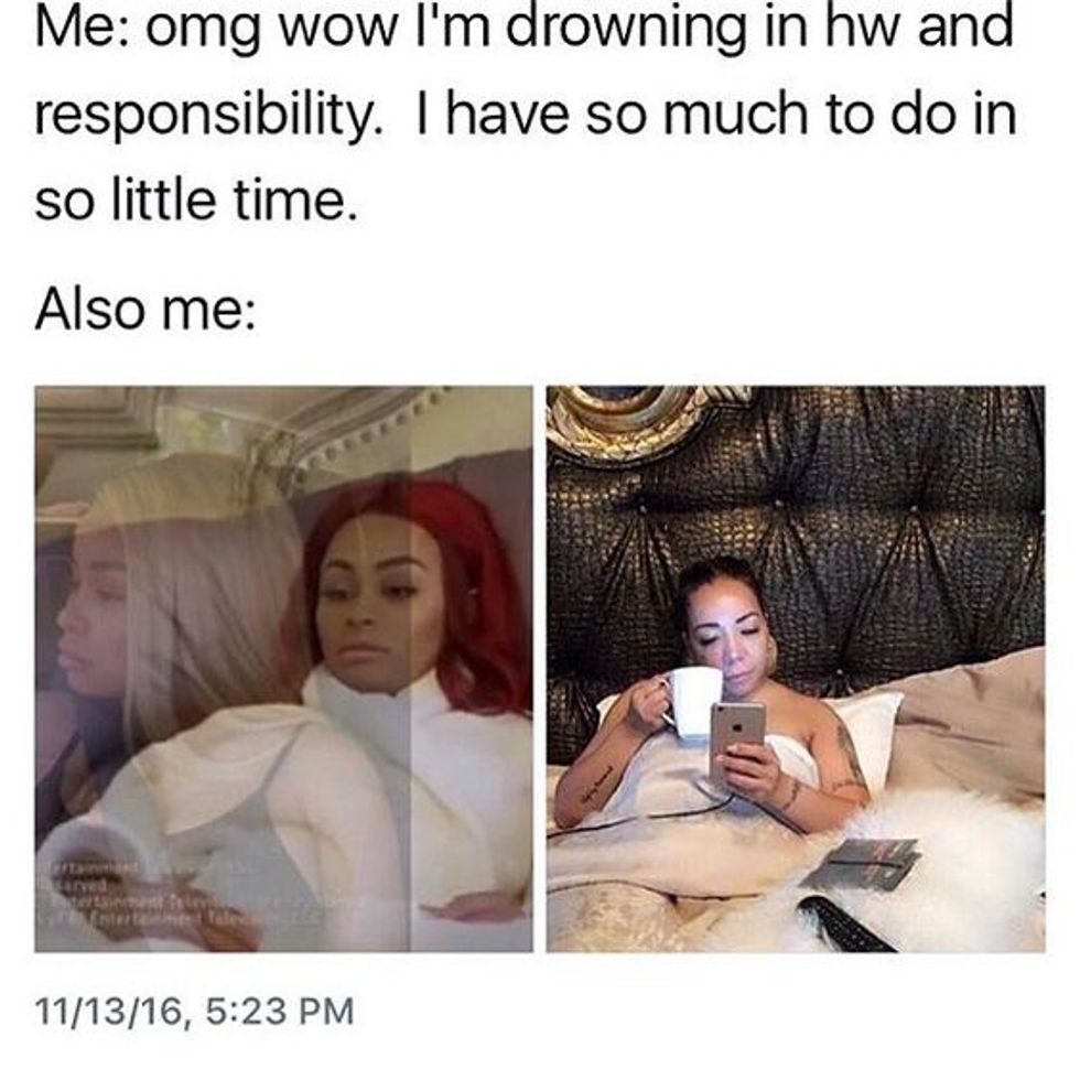 Memes are one of those things that everyone loves even if you don't admit it. As a college student, you want to find anything that will distract you from doing any type of homework or studying and memes are the perfect distraction. All types of memes are produced on a daily basis, most especially from college age students. They are the most relatable content found on social media, and I think we are all thankful for those little moments that take our mind off of the stress of college. So if you are a college student, or once were a college student, you might find these memes extremely relatable.