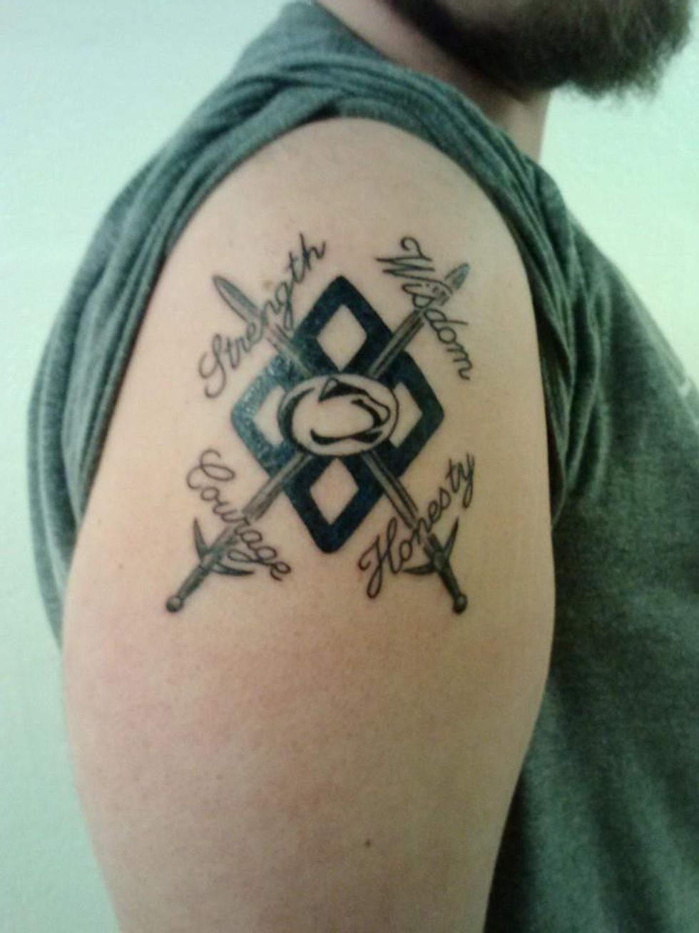 Two weeks before the big day, I had this etched on my right shoulder. The diamonds represent the story of the Four Diamonds, where the Four Diamonds Foundation gets its name. Christopher Millard, who was battling cancer, wrote a story about himself as a knight pursuing the Four Diamonds.