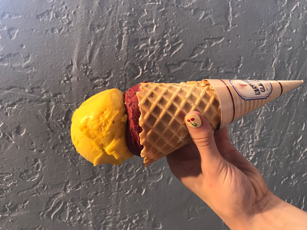 There is some nostalgia associated with this item. Although it's unbelievable and the assortment of flavors have yet to disappoint me, I've gotten this treat ever since my 14th birthday in Disney World. I highly recommend pairing the Mango and Berry flavors, because it makes for a refreshing treat in the middle of a hot day. I do remember spilling this right before meeting my favorite princess, Snow White. Besides the mental breakdown I had, every experience I've had with Les Artisans has been to die for. Plus, Snow White made me feel better about the smeared gelato all over my skirt.