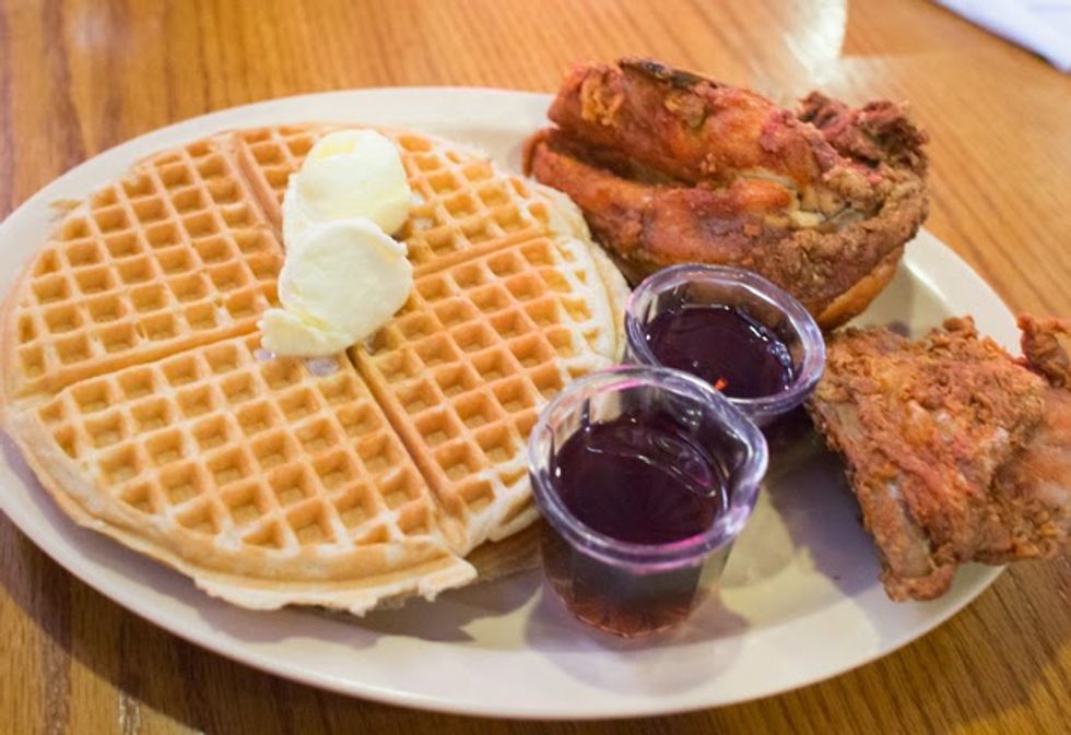 Description: Three words. Chicken and waffles. What more do I need to say? This combination might seem weird, but trust me, halfway through your meal you will start dipping your chicken in syrup and enjoy it as you look around for validation, only to see everyone else at the table doing the same thing.