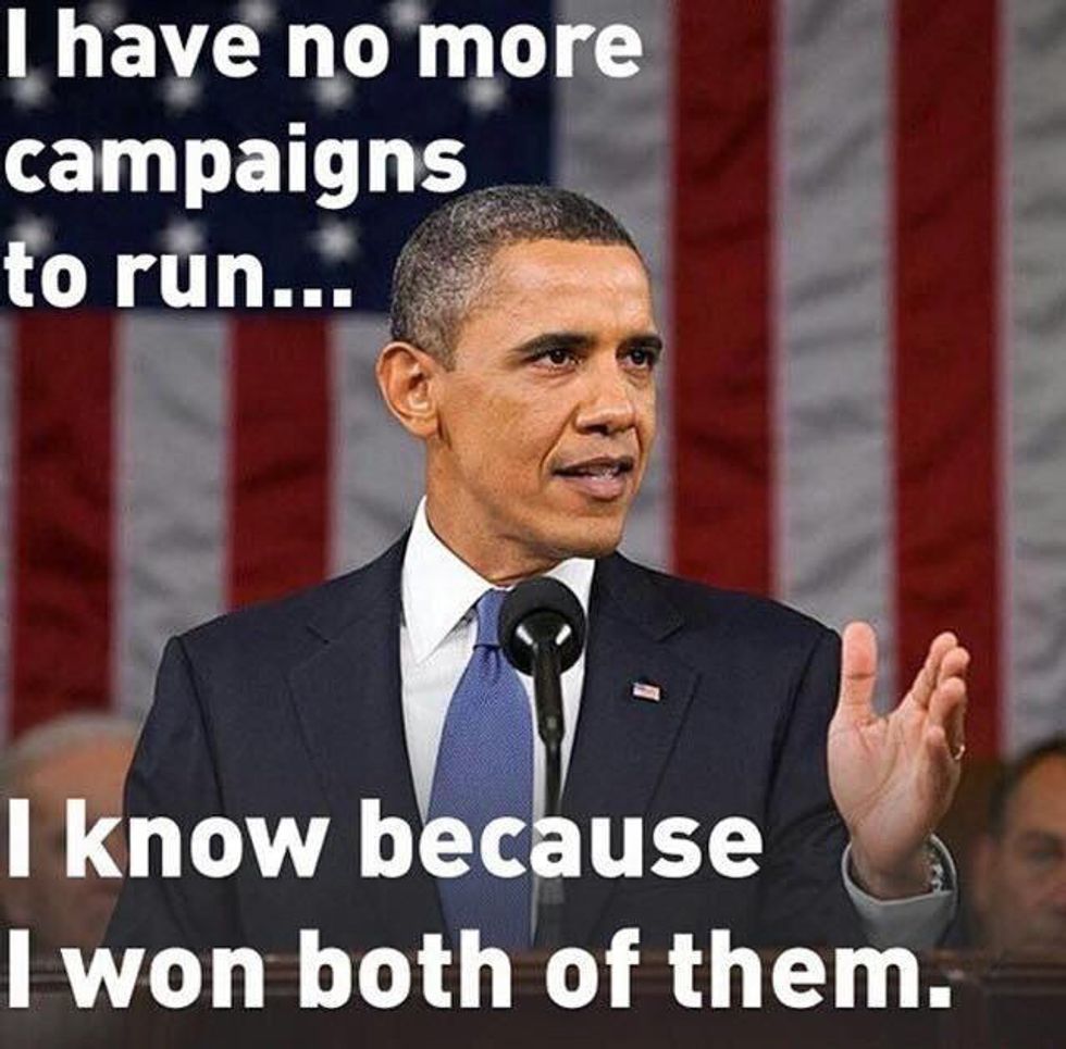 He said this during his State of the Union Address after some Republicans cheered when he made the remark that he didn't have any more campaigns to run. Classic.