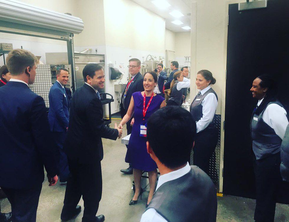 12. On his way to a make CPAC speech, Rubio stops to greet staff of the Gaylord Convention Center. He tells them, “My dad used to do this.” He also mentions how “this is real work, not running for president.”