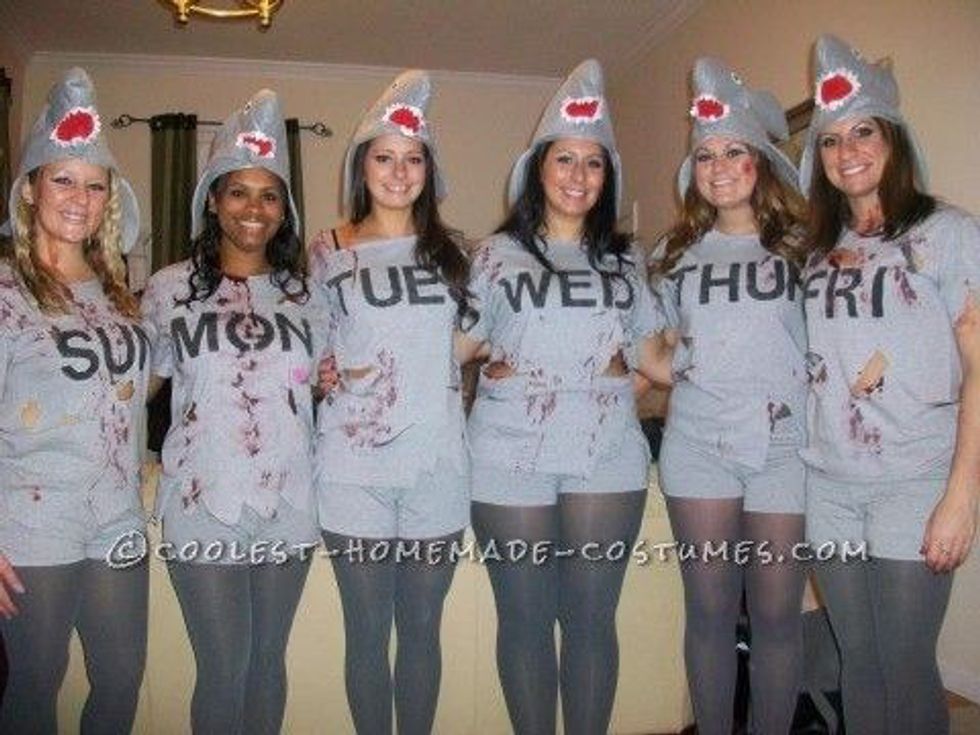 Get a group of friends and dress up as the most anticipated week of the year: Shark Week! Write the name of the week on a grey tee, splatter some fake blood, and throw on a shark hat and you’ll swim through the crowds!