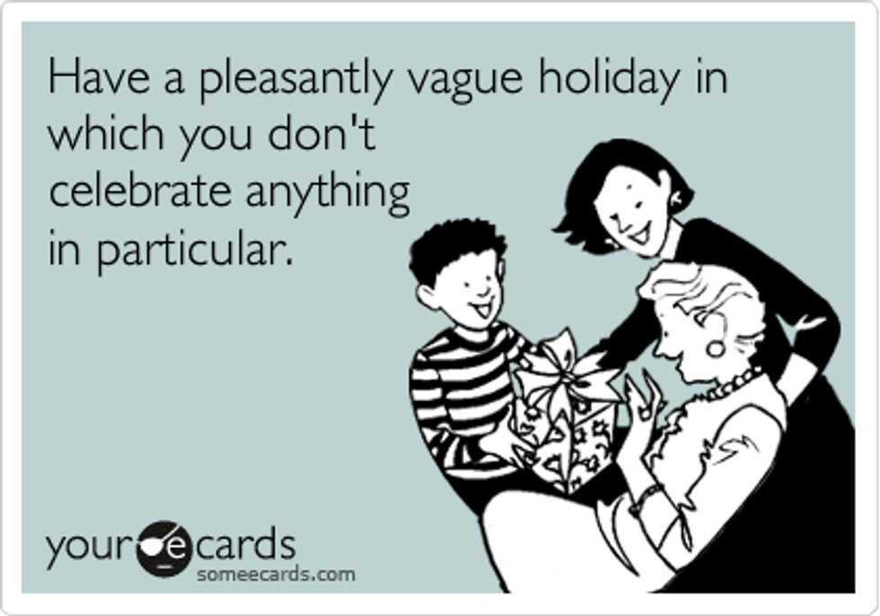 When in doubt, go back to the classic, all-encompassing "Happy Holidays." To make it more specific, use the singular Happy Holiday, allowing the receiver to mentally choose which Holiday you are referring to.