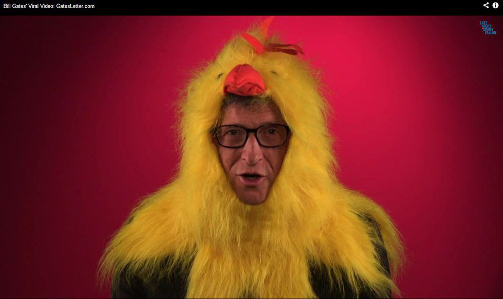 As silly as this picture is, Gates has partnered with Heifer International and is donating 100,000 chickens to those living in poverty in Africa. Chickens are easy to take care of and make a profit on, making them a valuable resource.