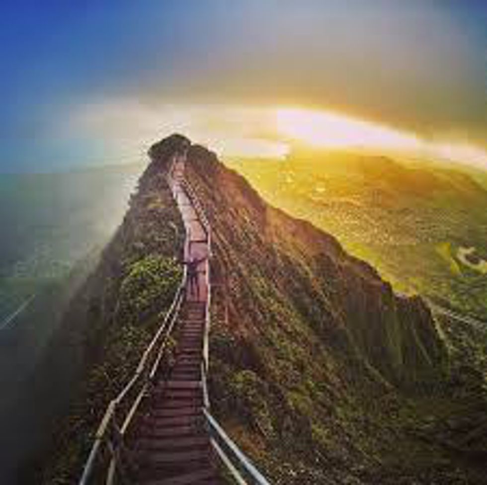 Referred to as the Stairway to Heaven along the mountain side overlooking fantastic views of Hawaii.