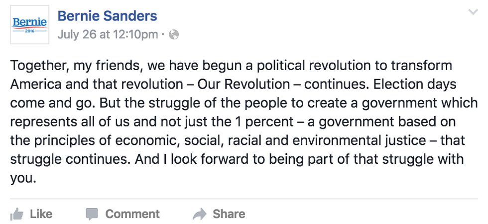 Even after Hilary won the nomination, Bernie made a point to state that his efforts are not going unseen --- the revolution that Bernie is working towards is still in the books.