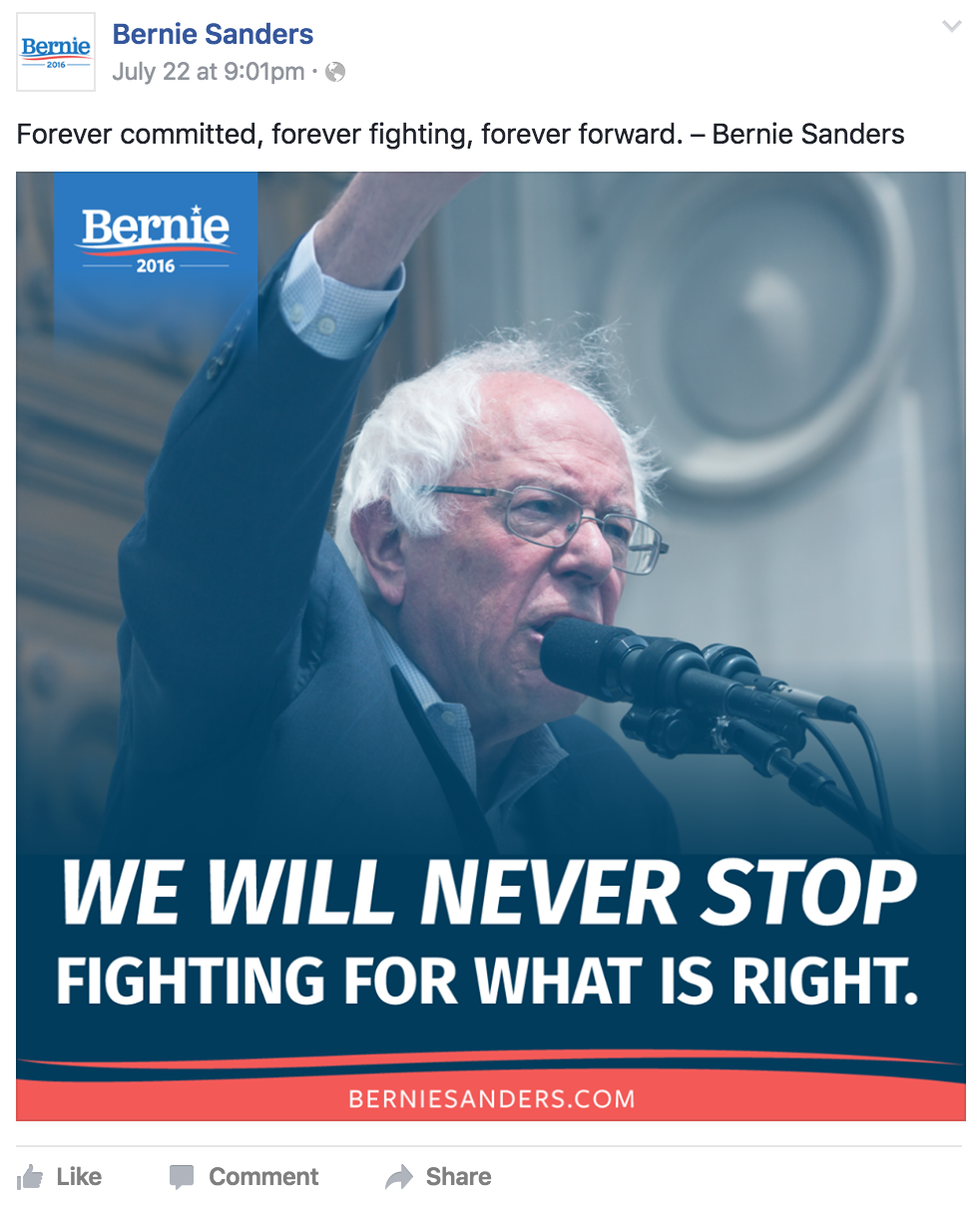 Below are 15 posts taken from the Facebook of Bernie Sanders that show who Bernie really is his character, his views, his goals, his aspirations, etc. What has Bernie been doing since (and before) Hilary Clinton won the Democratic nomination?
