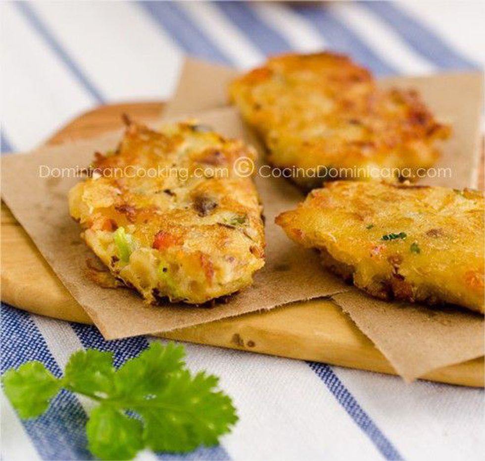 Bacalaitos are fried cod batter. Although I do not really know how to make the batter myself, I know that it is delicious. Although wildly unhealthy, it's good to indulge yourself occasionally in the gloriousness that is a bacalaito. They are very salty and make your soul happy. These are also cooked by the famed "fritoleros" and are a staple of Puerto Rican social events.