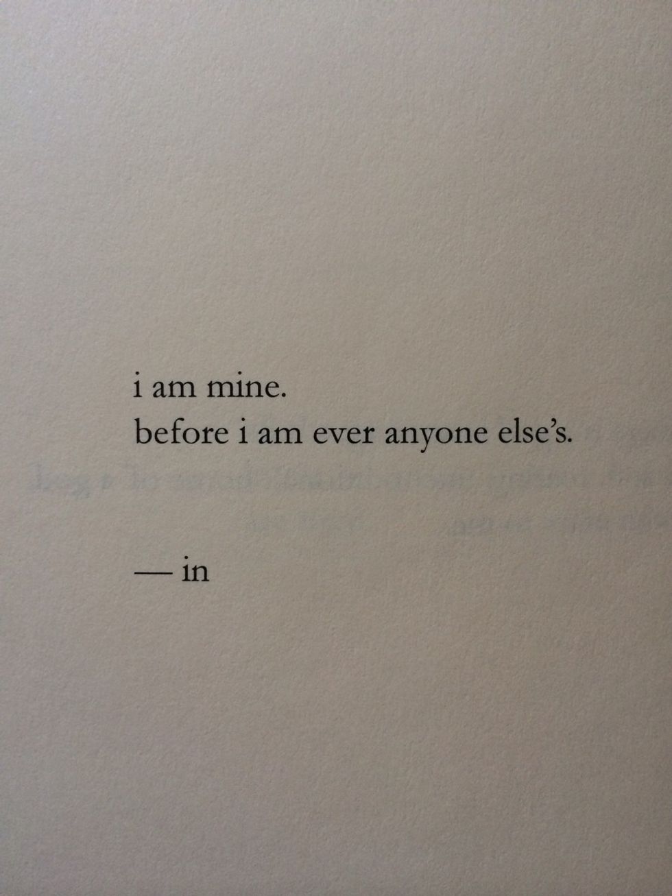 You came into this world with no one but yourself and that’s how it is. No one else gets to call you theirs and gets to make you into something that you’re not. You were already yours before you were ever made to be another person’s. You are your someone.