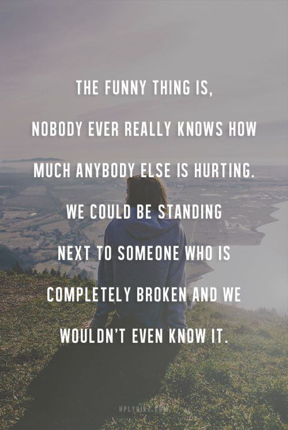 Be nice to people, compliment people, and love people because so many people go through so many different things.