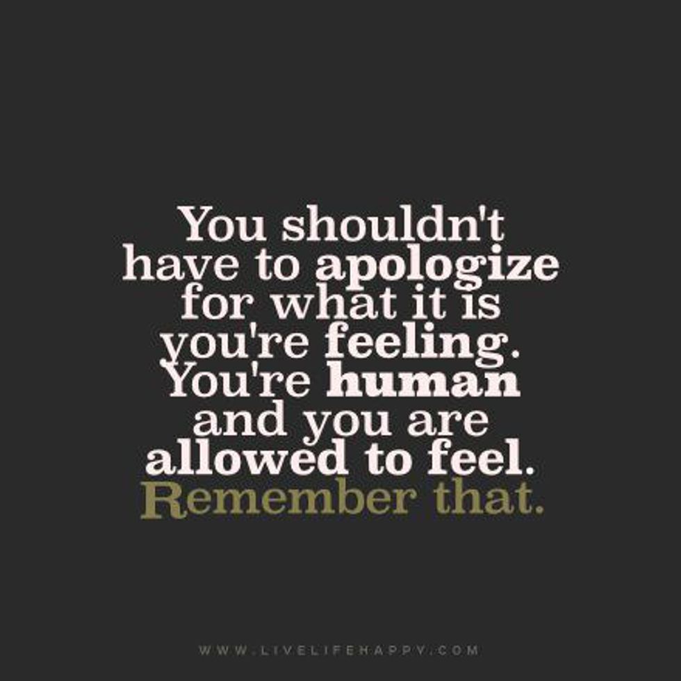 Your feelings are what make you unique to the world. If you were like everyone else, what would that look like to the world? That’s super boring. So, continue to be you and feel what you feel. You don’t have to apologize for anything.