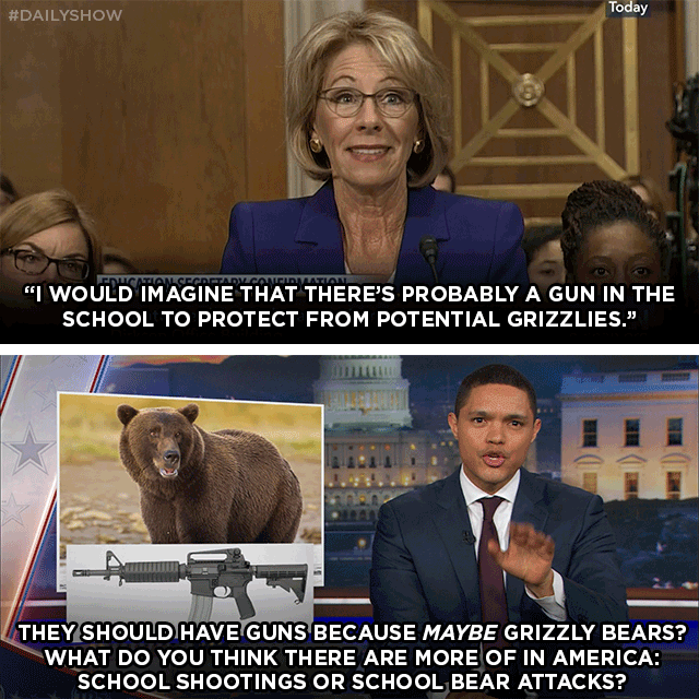 Um, no. Just... no. (The example she gave of the school on an Indian reservation in Wyoming possibly needing guns to protect against grizzly bears wasn't even relevant. Senator Enzi mentioned earlier that the school had an electric fence surrounding it to protect students from grizzly bears.)