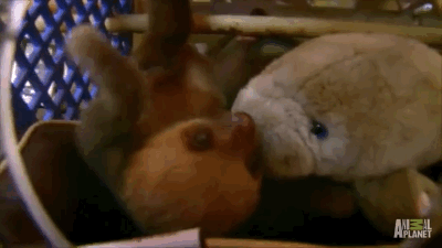 Since sloths spend most of their life hanging in trees, the strong grip from their claws and muscles are so strong that sometimes, even after they die, they are still clinging to the same branch as they were when they were alive. Sometimes, college students like to cling on to the first person they meet or their roommate, to the point that it becomes annoying.
