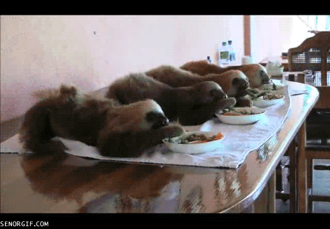 Sloths only leave tree once a week to urinate/defecate. On somedays, in particular weekends, the only thing that gets me out of bed in the morning is to eat and use the bathroom.
