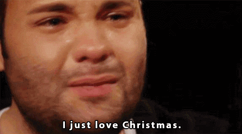 "Shouldn't you be sitting on top of the tree, angel?" Yikes.