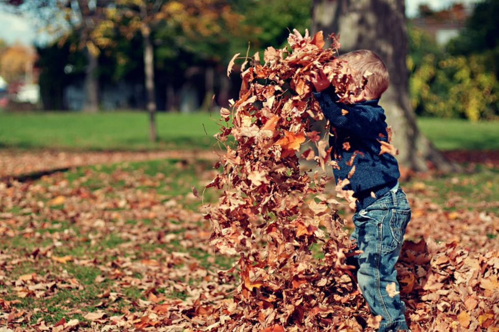 No one likes to rake leaves but jumping into leaf piles is a fun way to clean up the yard.