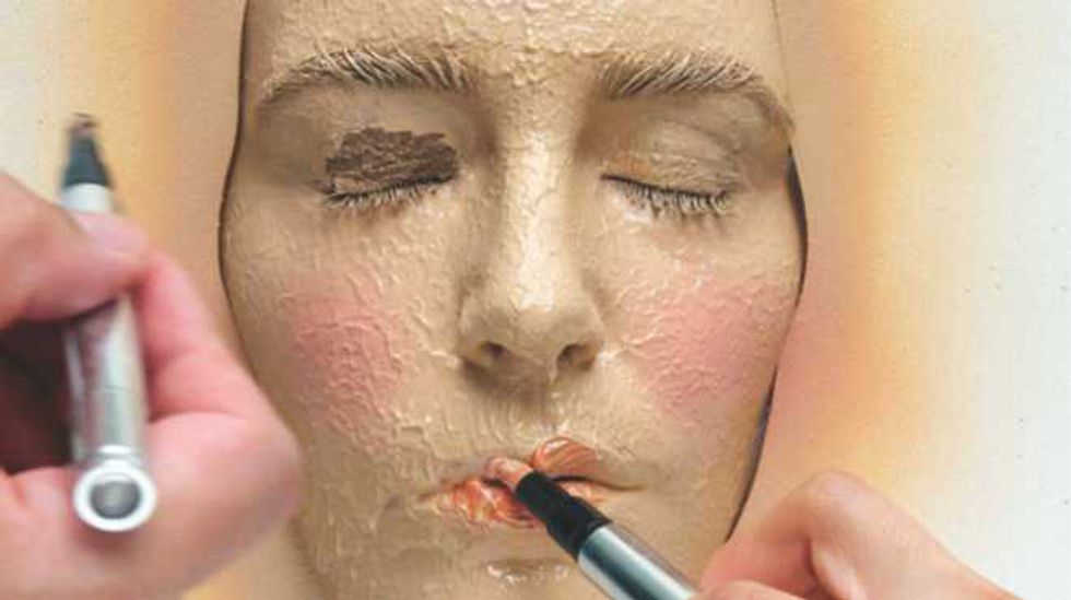 Applying foundation from the brush to the face can transfer too much product and lead to the product becoming thick and noticeable on the face. Depositing foundation on the back of your hand and applying the foundation to your face in small increments is a technique to use to help prevent the overuse of product. It is easier to build your foundation to the coverage that you want with this technique.