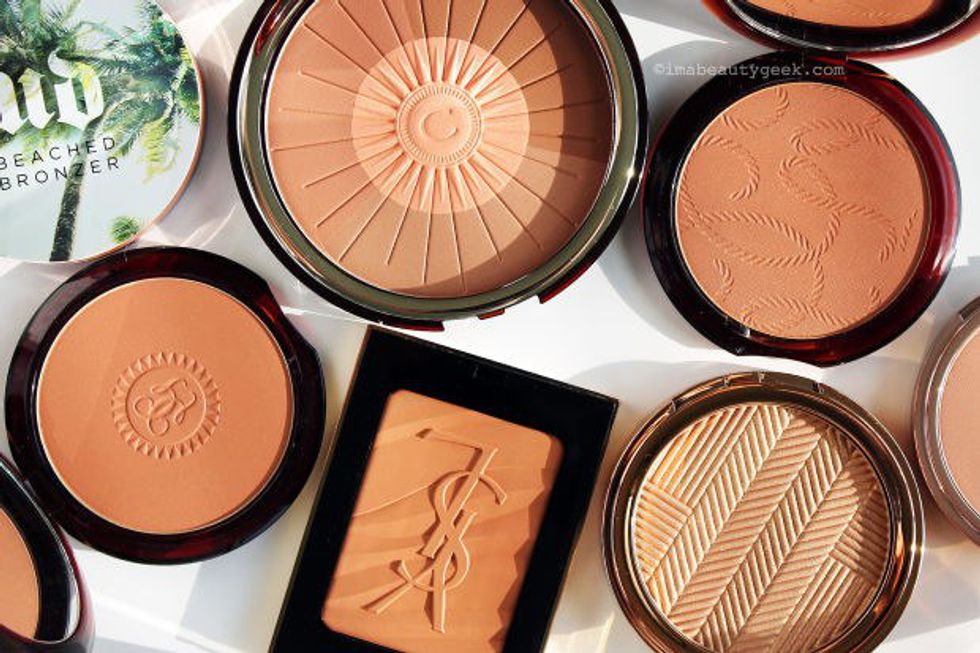 There are different shades of bronzers. Some are cool toned, and others are warmer. Typically, if you are trying to go with a bronze/summer look, a bronzer with a more orange/red tone would look great. Even a bronzer with a bit of shimmer would look nice. If you are trying to achieve that chiseled contour look, a cool toned (matte) bronzer can help you achieve the desired shadowed effects.