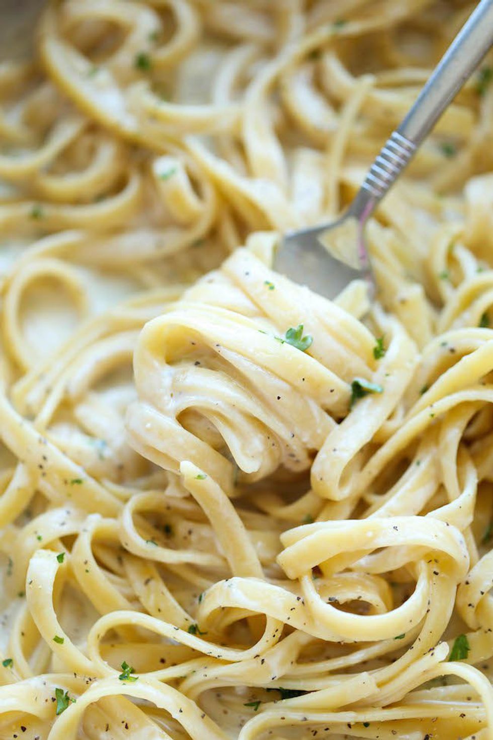 This is the best recipe ever! You literally just let it sit in a crock pot for seven hours and then you add some cream cheese. It is delicious and so unbelievably easy.